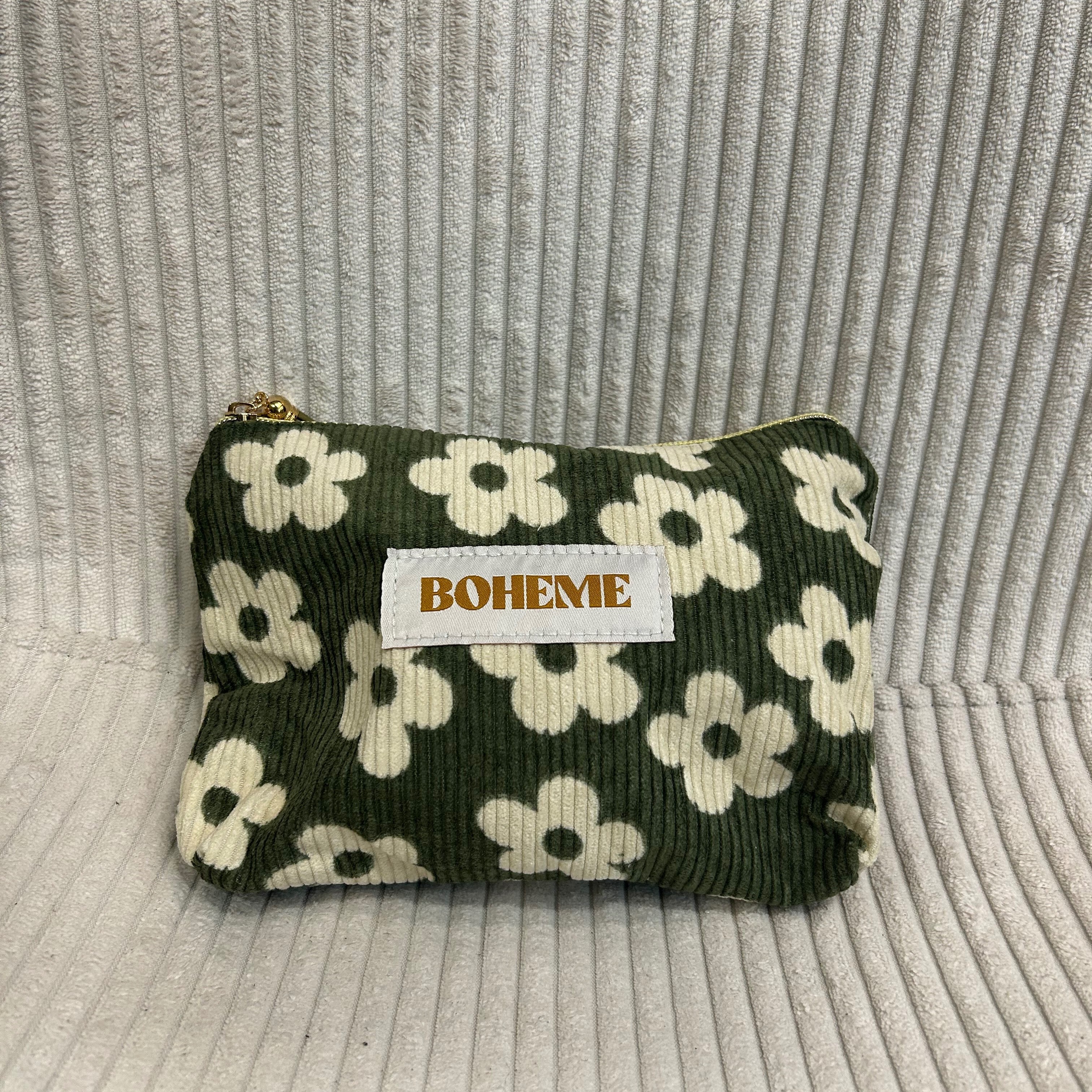 Cette pochette en velours verte avec l’inscription BOHEME est l’accessoire parfait pour glisser vos essentiels : maquillage, clés, téléphone, papiers… Elle se porte seule pour un look tendance ou se glisse dans un sac cabas pour rester organisée avec style.
