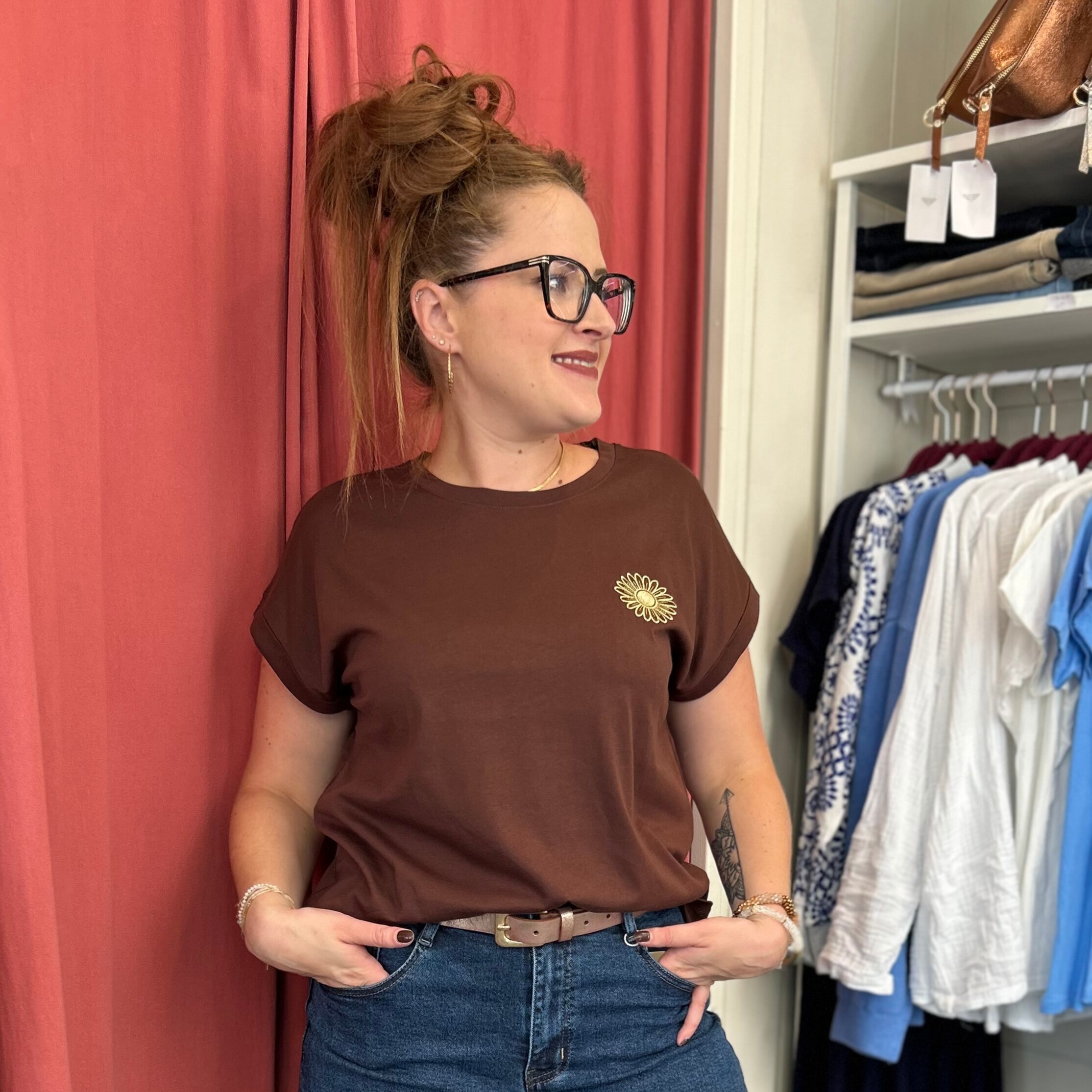 T shirt marron à soleil