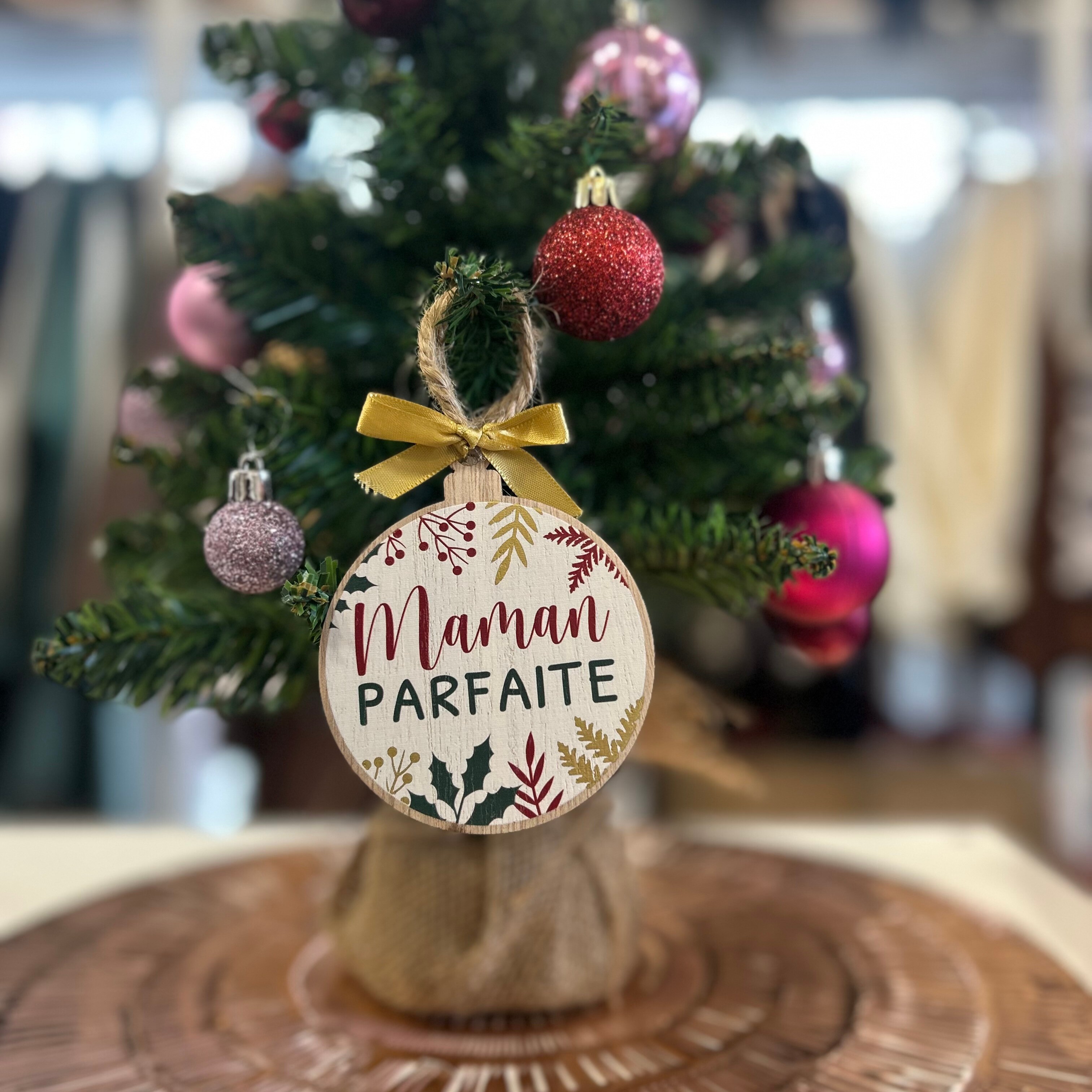 🎄 BOULE DE NOEL PLATE EN BOIS - MAMAN🎄