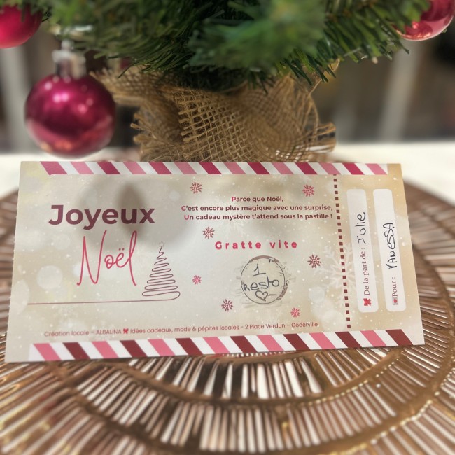 Envie d’offrir une surprise qui fait plaisir à coup sûr pour Noël ? Notre Bon Cadeau à Gratter spécial Fêtes est la petite attention parfaite pour créer un cadeau unique, personnalisé et fun ! 🎄✨