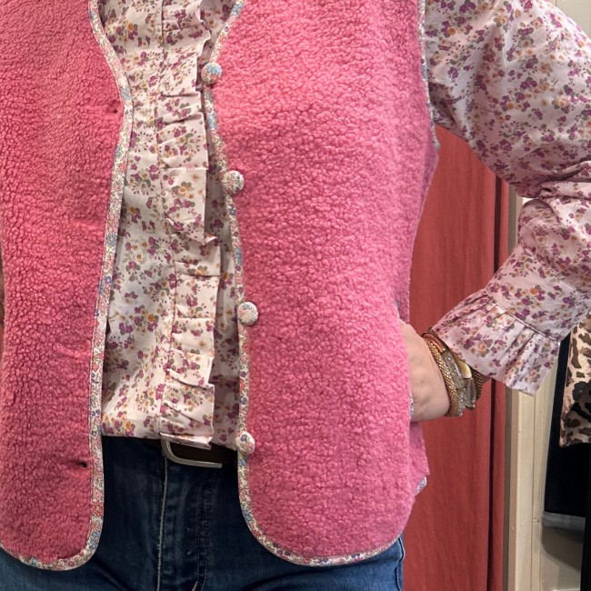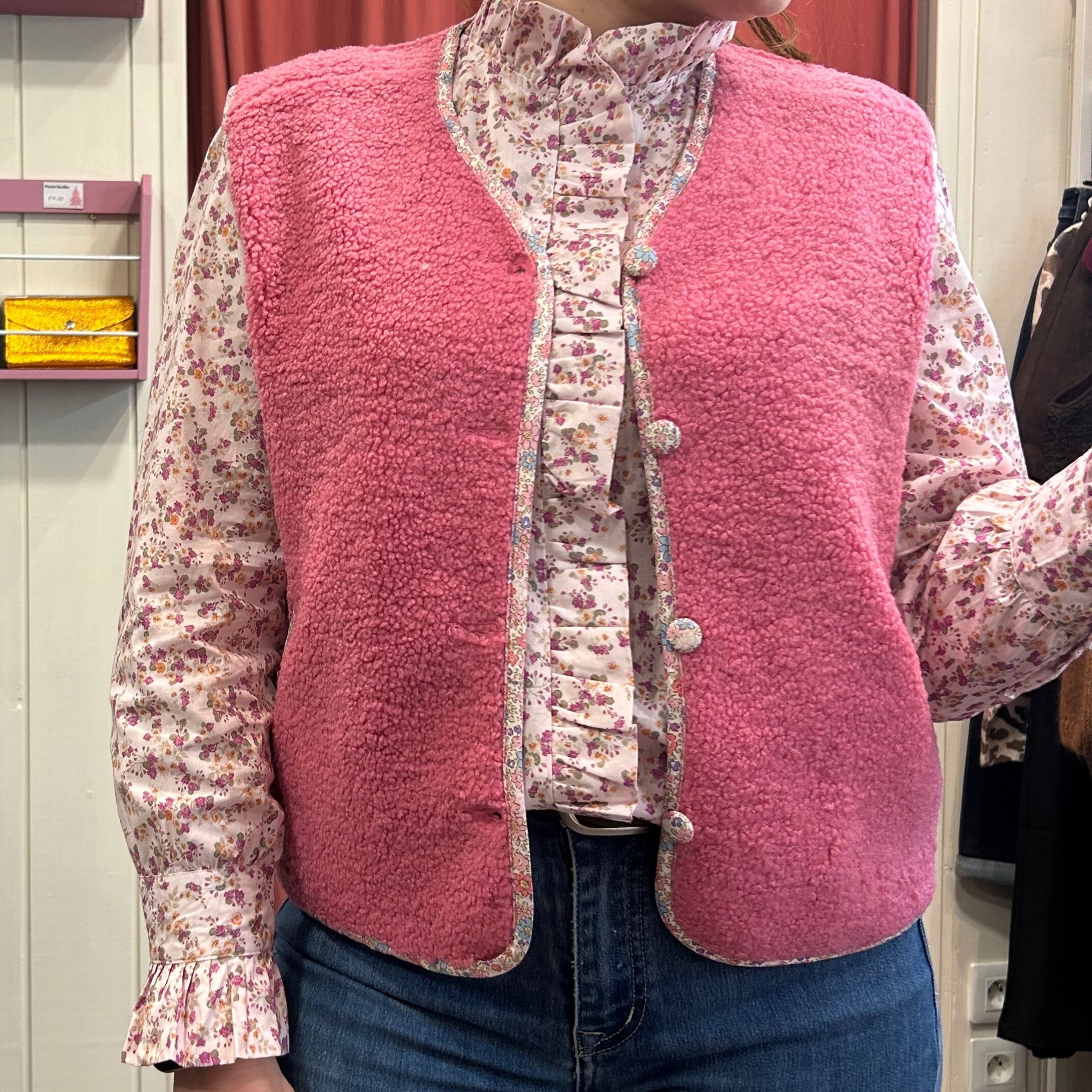 Un gilet plein de douceur et de charme, idéal pour réchauffer une tenue tout en apportant une touche féminine et colorée. Son effet bouclette et ses finitions délicates en font une pièce coup de cœur, facile à superposer.