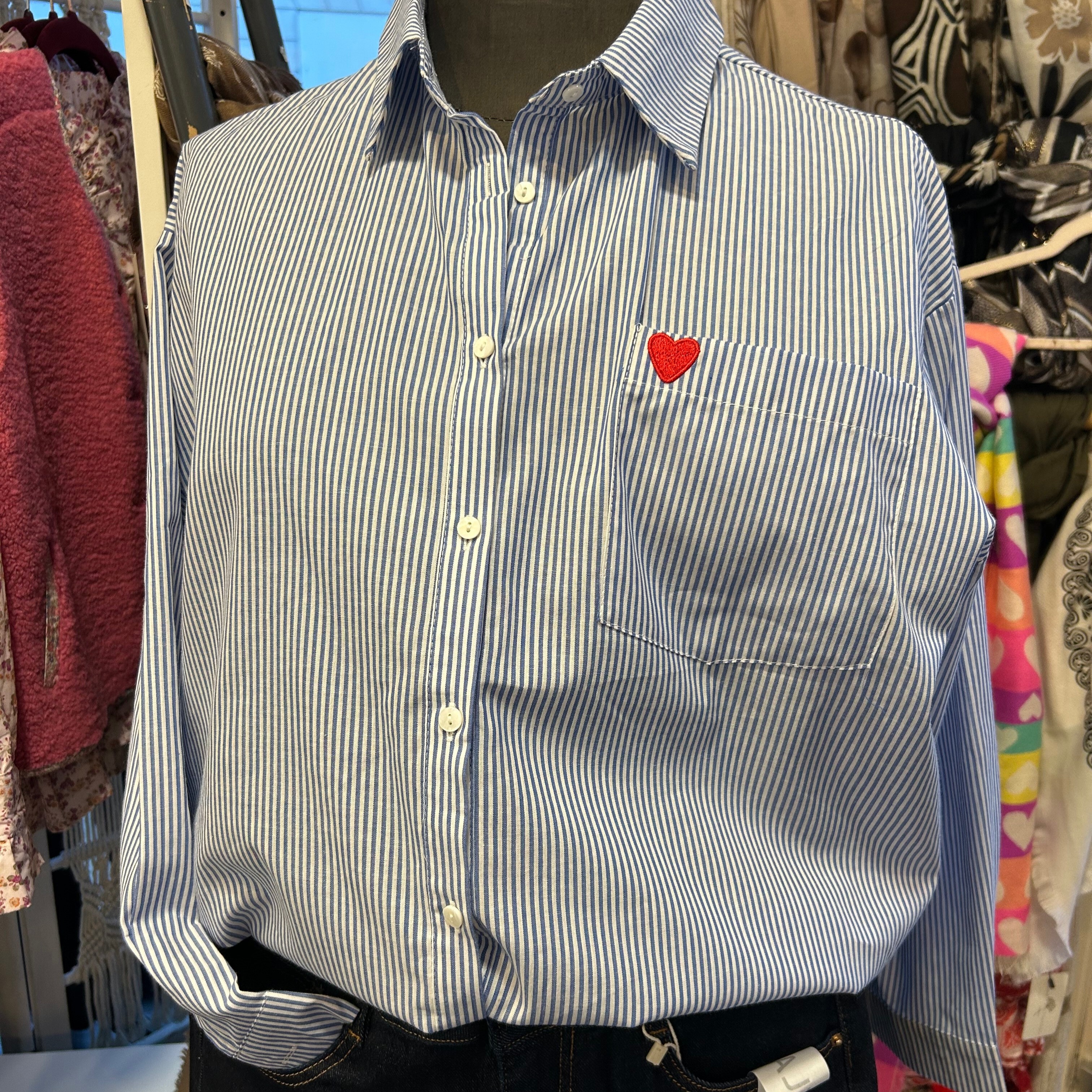 ✨ Chemisier rayé bleu et blanc avec détail coeur ✨