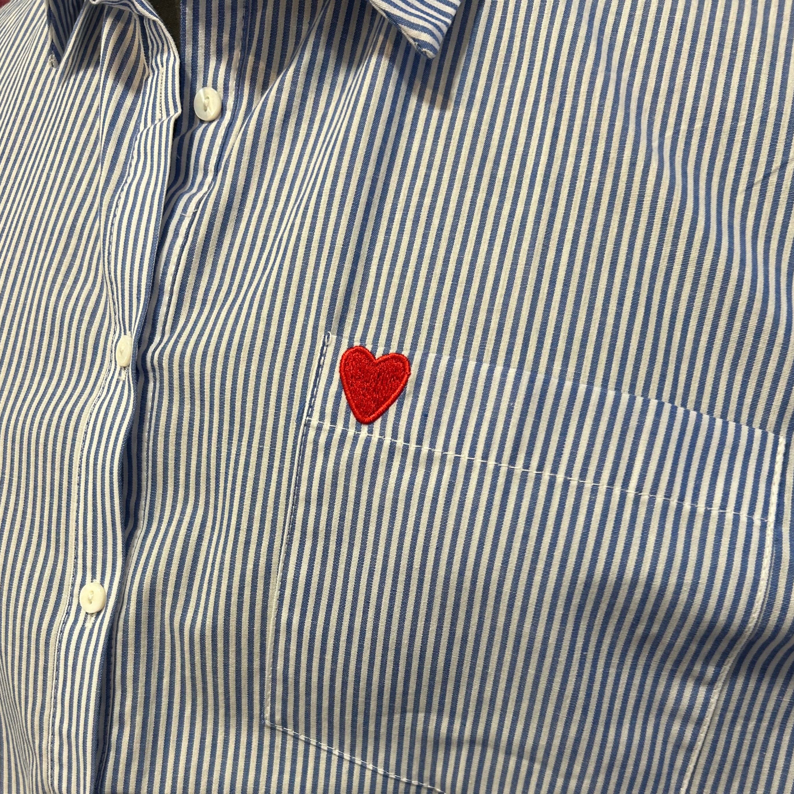 - Petit cœur rouge brodé sur la poitrine, discret mais ultra stylé