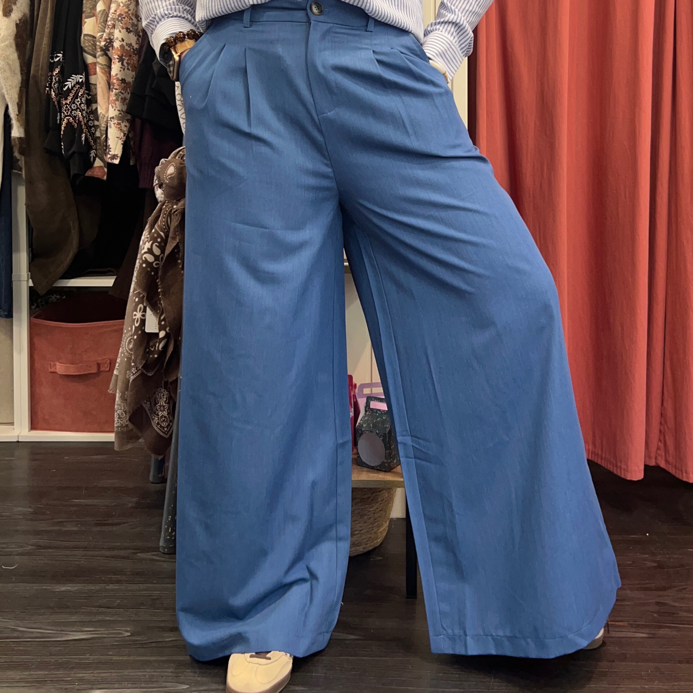 Pantalon palazzo bleu – Élégance fluide & silhouette élancée