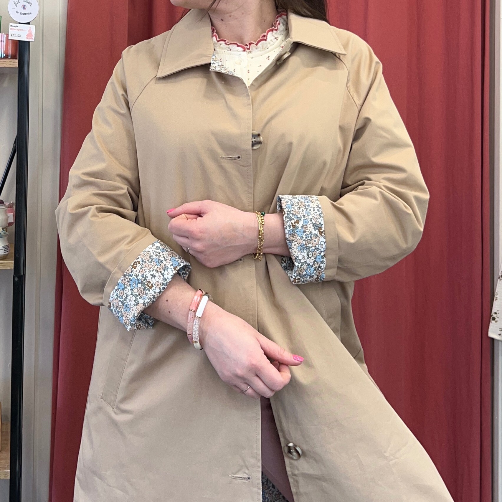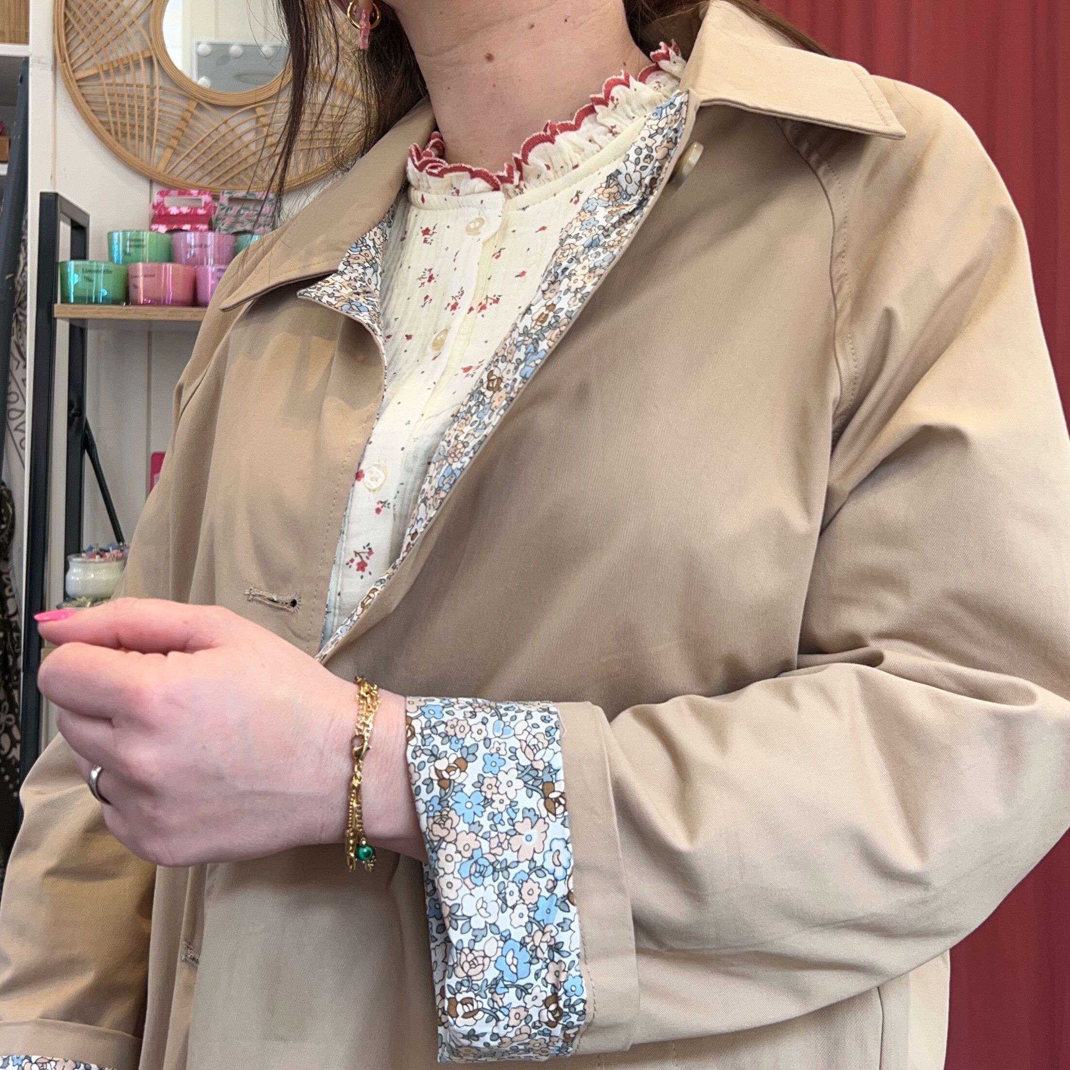 À l’intérieur… la surprise đ une doublure fleurie esprit liberty qui apporte une touche romantique et délicate. Un détail que l’on retrouve également sur les revers de manches, parfait à retrousser pour laisser apparaître l’imprimé. Sa teinte beige intemporelle s’associe à toutes les couleurs : jean, rose poudré, imprimés fleuris… Il vient sublimer une tenue sans l’alourdir. Sa coupe droite légèrement ample permet de le porter aussi bien sur une blouse que sur un pull plus épais à la mi-saison.