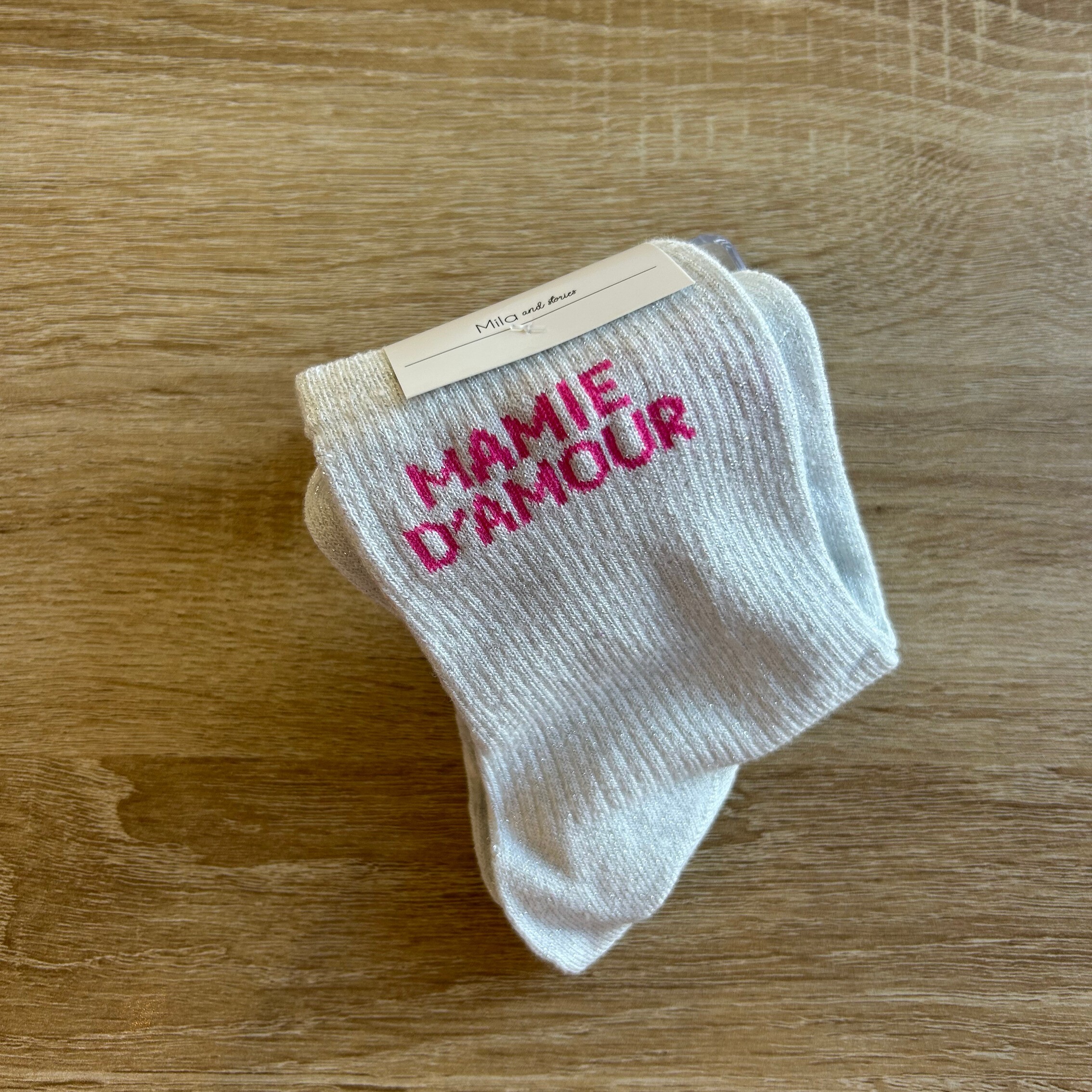 Chaussettes femme à paillettes - Mamie d'amour blanc