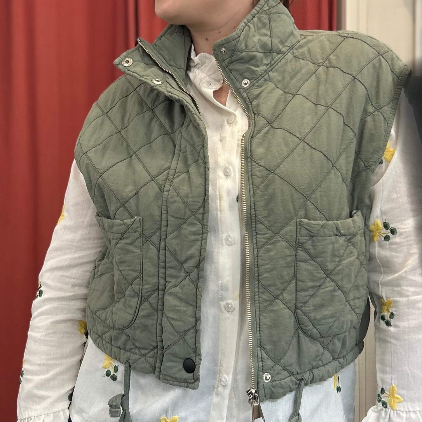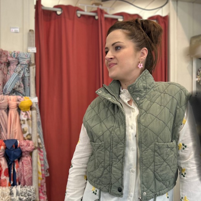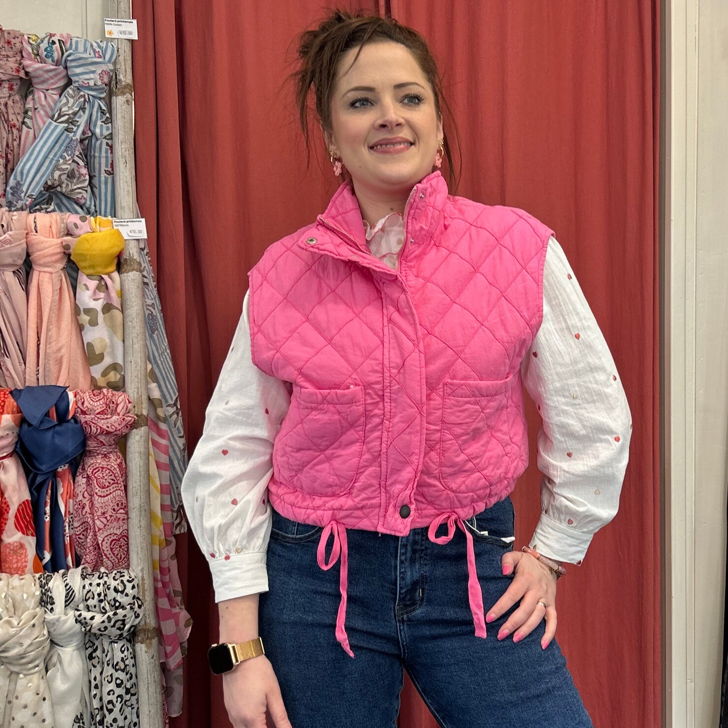 Cette veste sans manches matelassée rose apporte une touche moderne et féminine tout en restant facile à porter au quotidien.