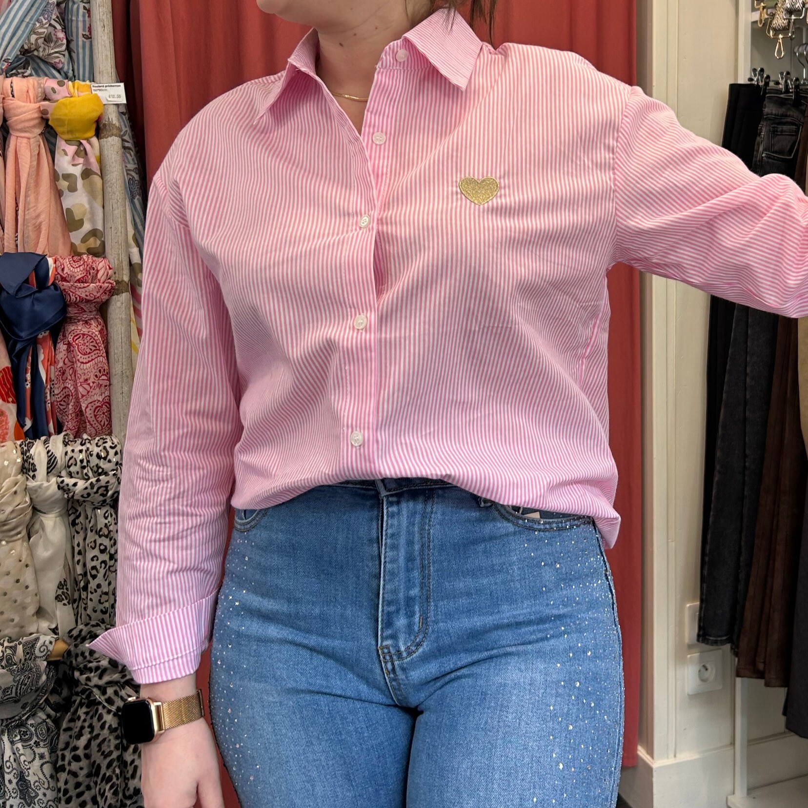 💗 Chemisier rayé rose cœur doré