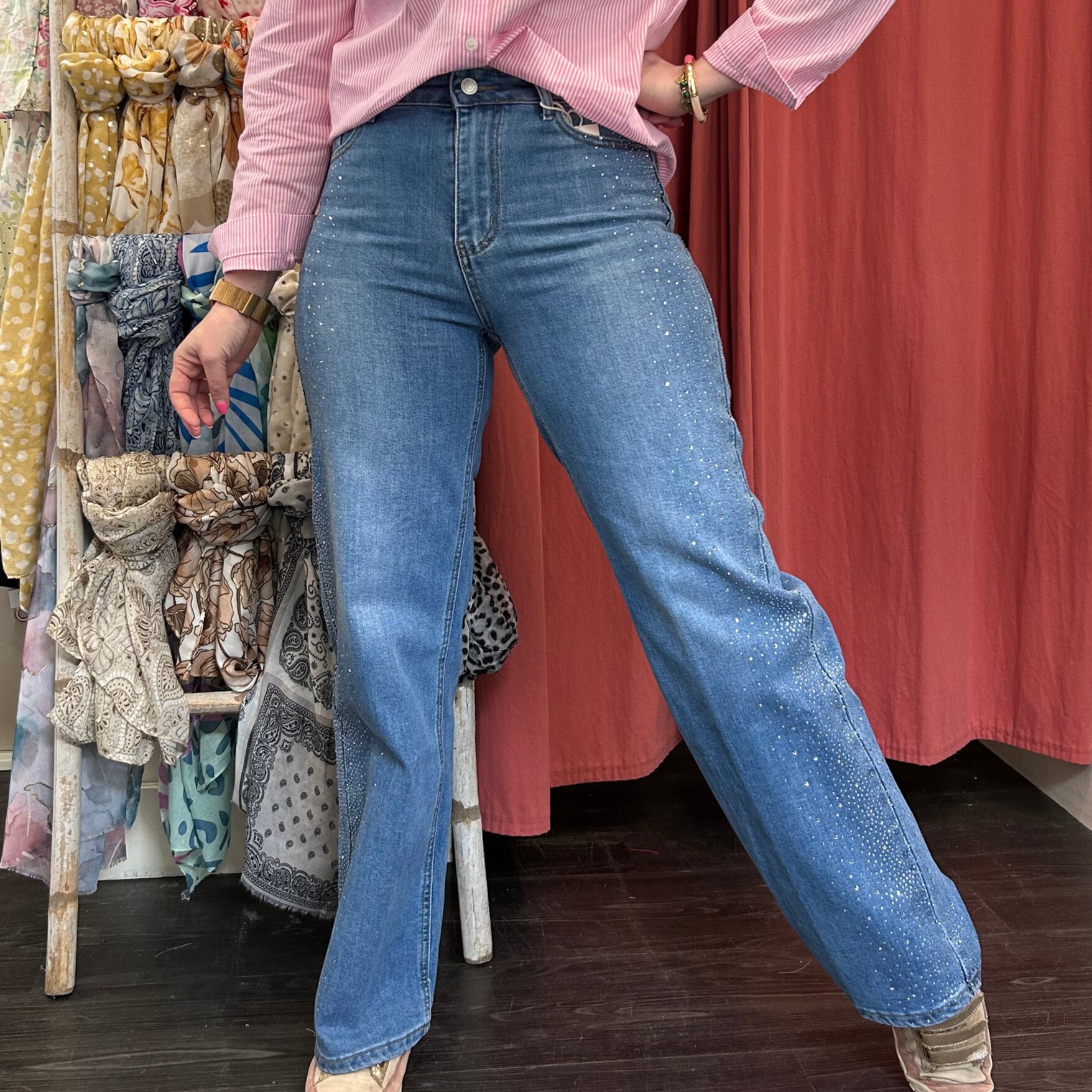 Un pantalon plein de charme avec ses délicates petites broderies bleues qui apportent une touche originale tout en restant facile à porter.