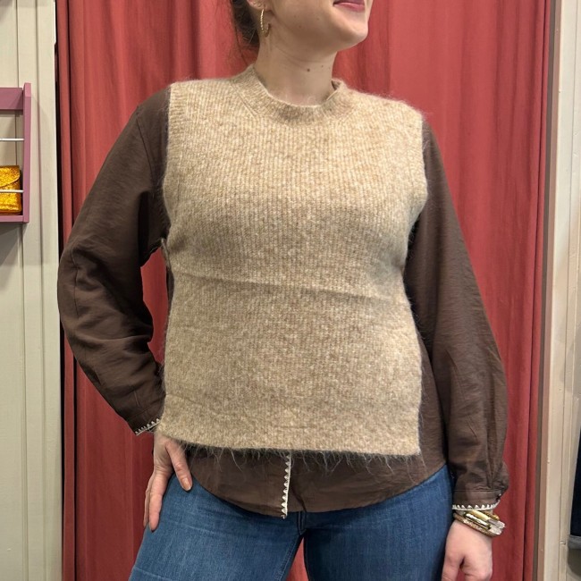 Pull sans manches beige - ouvert sur le côté par boutons