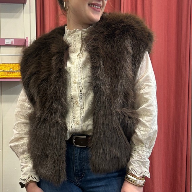 Gilet chocolat sans manches fausse fourrure
