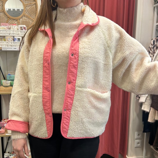 Veste réversible rose et sherpa