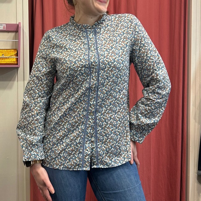 Chemisier fleuri bleu et camel