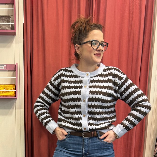 Gilet rayé à boutons coeurs