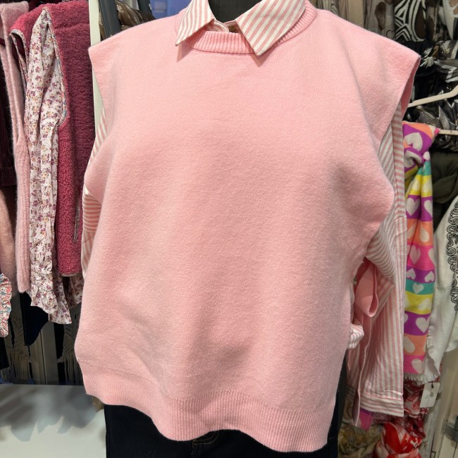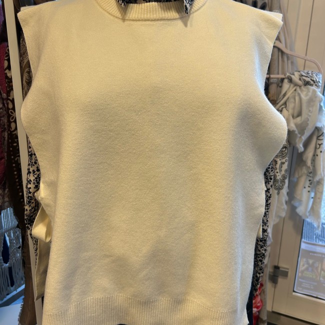 Gilet écru sans manches bouclettes avec plastron décoratif sur la poitrine