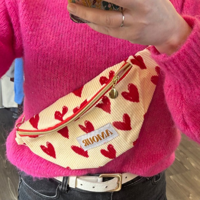 Banane écrue à cœurs en velours - message amour