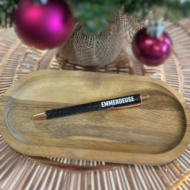 Stylo Ă  message Ă  paillettes - Emmerdeuse - Noir